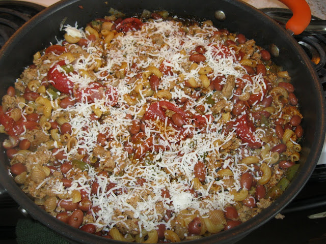The herbs, worcestershire and the herbed tomatoes really made this dish have a ton of flavor. The different textures of the beans, pasta, onions and peppers was great, as well. As weird as this may sound, when I tasted it I almost wished that I would have sprinkeld just a touch of cinnamon to finish the dish. For some reason cinnamon kept coming into mind.
